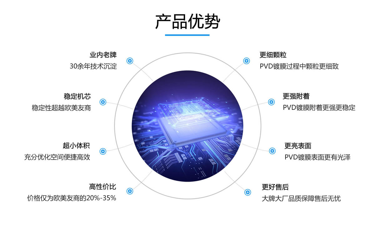 自上世纪80年代中期,我司人员就开展了真空领域的技术研发与生产应用。国内早期真空行业使用的各种电源,包括但不限于磁调式多弧电源、可控硅式直流溅射电源、可控硅式偏压电源等,均出自我司人员之手。多年来,我司做到虚心采纳客户建议,坚持学习不同领域真空知识,不断以技术创新为动力,迭代出一代又一代高品质电源,包括但不限于直流溅射电源、中频溅射电源、脉冲偏压电源、离子镀多弧电源等。这些电源能显著提高各金属非金属靶材的离化率,适应各种结构的真空腔体,具有非常优秀的运行性能。